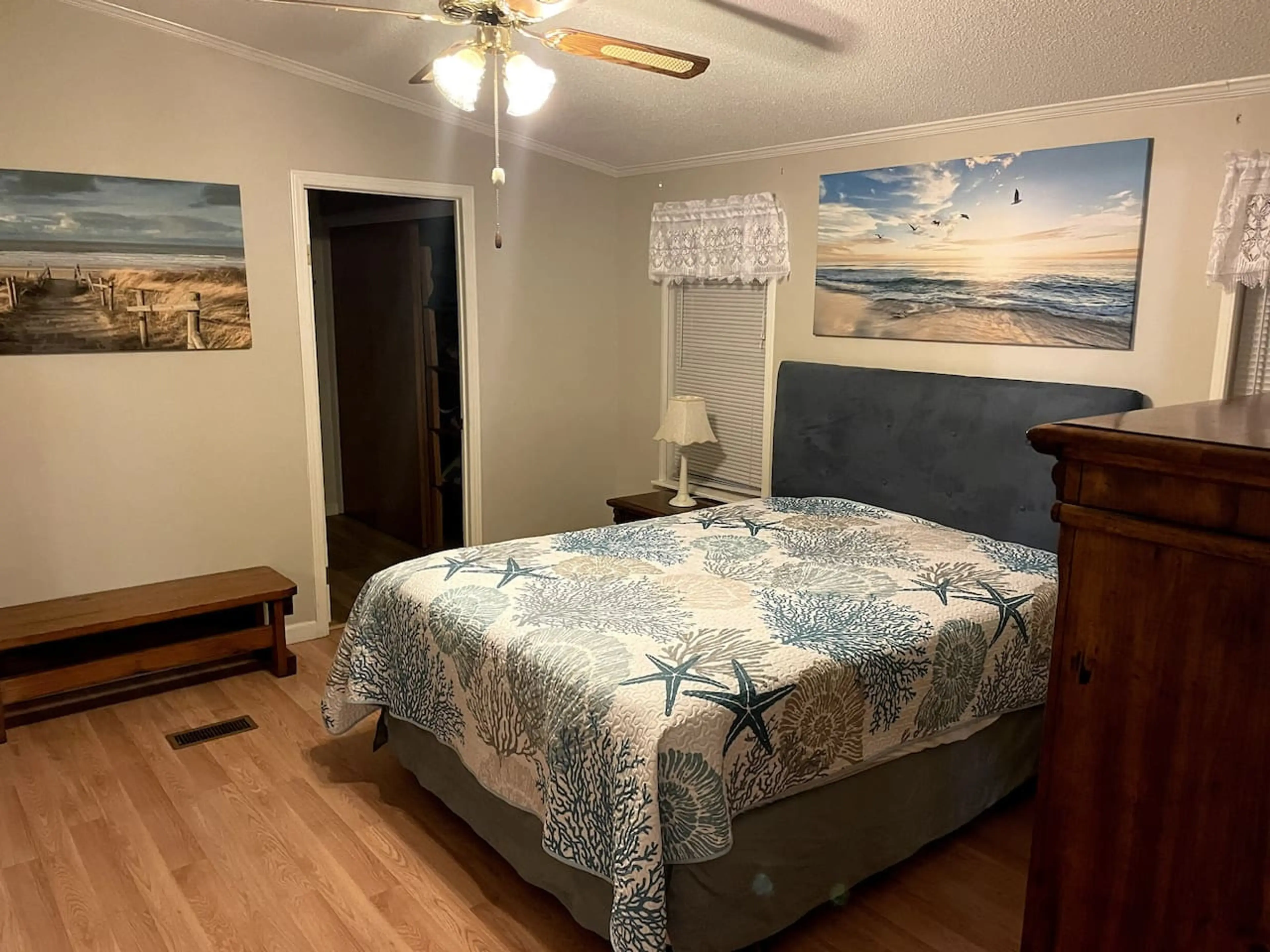 Welcome to the Beach House at Ocean Lakes Family Campground! - Spacious 1,600 sqft home, beautifully decorated - Relaxing covered porch with coastal vibes - Sleeps 8 comfortably, pull-out sofa for 2 more - Ample parking for two vehicles and a trailer - Easy access to beach and water park ...